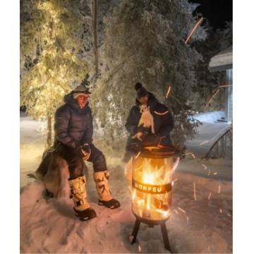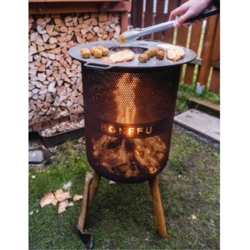 Cette cheminée de jardin de 45 cm de diamètre et 100 cm de hauteur dispose d’un acier perforé offrant une belle vue sur le feu. Les pieds du BonFeu BonVez sont extensibles. La plancha BonFeu 55 peut être ajoutée afin d’utilisé le BonFeu BonVez comme poste de cuisson.