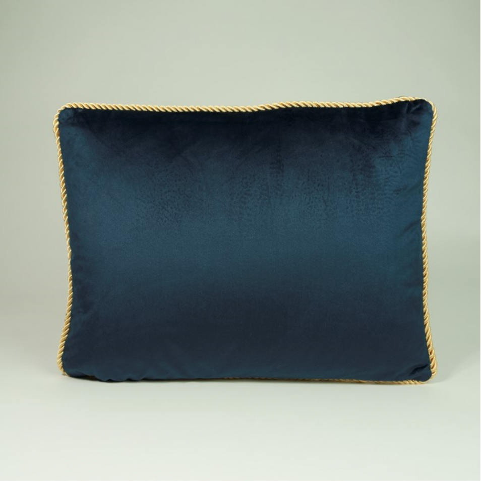 Coussin en velours bleu marine avec cordelle dorée 35 x 45 cm