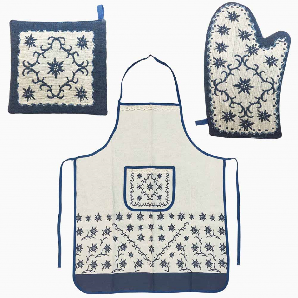 Y504 série, 1 pièce de tablier 72x82cm, 1 pièce de ensemble de tapis anti - échaudage 19x19cm, 1 pièce de gant 18x28cm, bleu