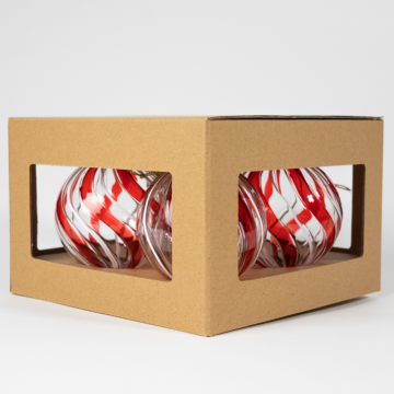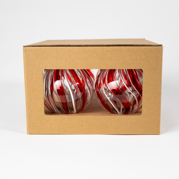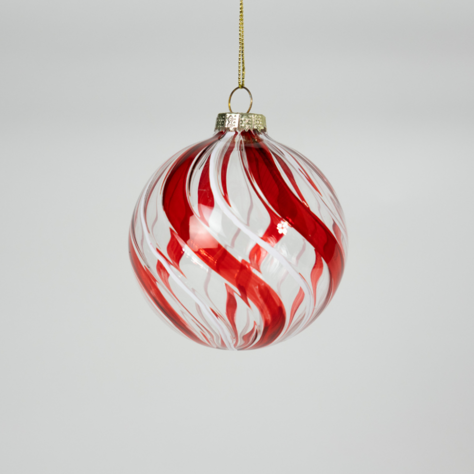 Boules en verre rouges et blanches en spirale , set de 4 pces, D8cm