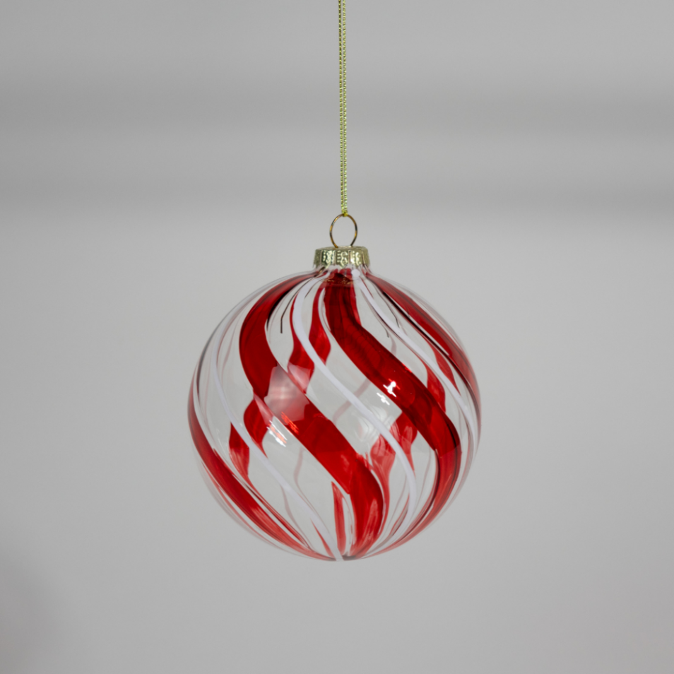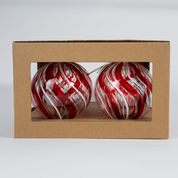 Boules en verre rouges et blanches en spirale , set de 4 pces, D10cm