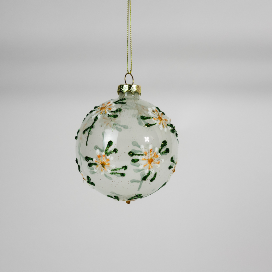 Boules en verre crèmes décorées, set de 4 pces, D8cm