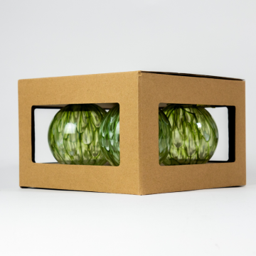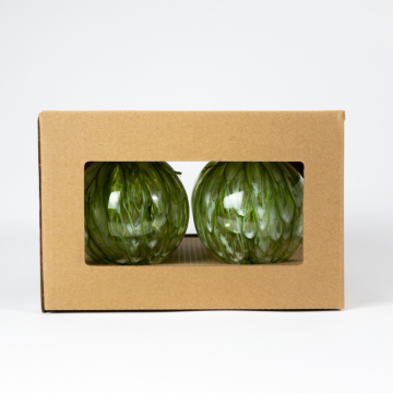 Boules en verre vertes claires décorées, set de 4 pces, D8cm