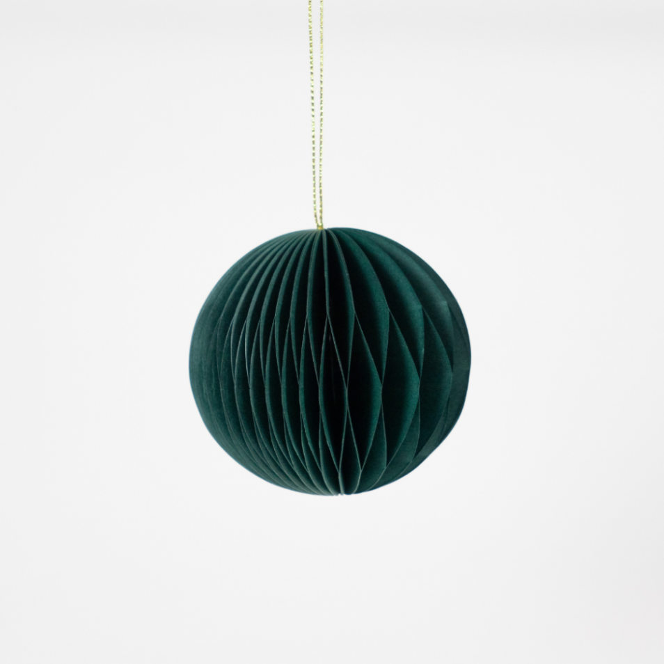 Boule de Noël en papier recyclé, vert foncé, diamètre 8cm