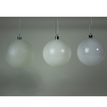Boules de Noël en plastique, blanc, D8cm, set de 6 pièces