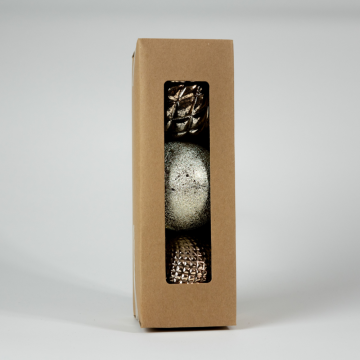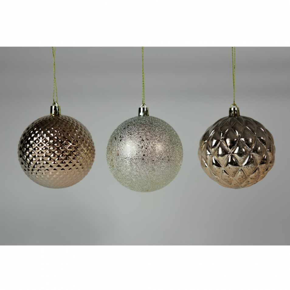 Boules de Noël en plastique décorées, bronze, D8cm, set de 3 pièces
