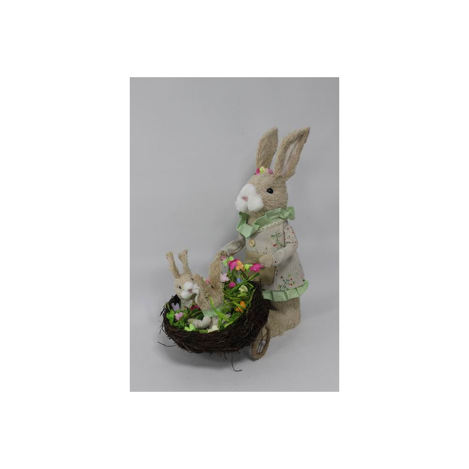 Grande lapine en jute avec brouette, longueur 35 cm, hauteur 40 cm