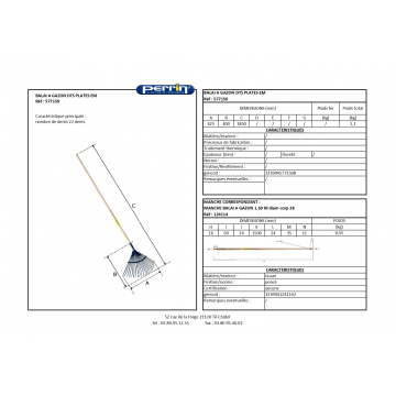Balai à gazon, 22 dents plates, emmanché droit 150cm (manche seul 45800 - 3239041241142)