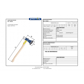Hache de bûcheron, 1250gr, emmanché galbé (manche seul 45806 - 3239041361093 / 45807 - 3239041421094)