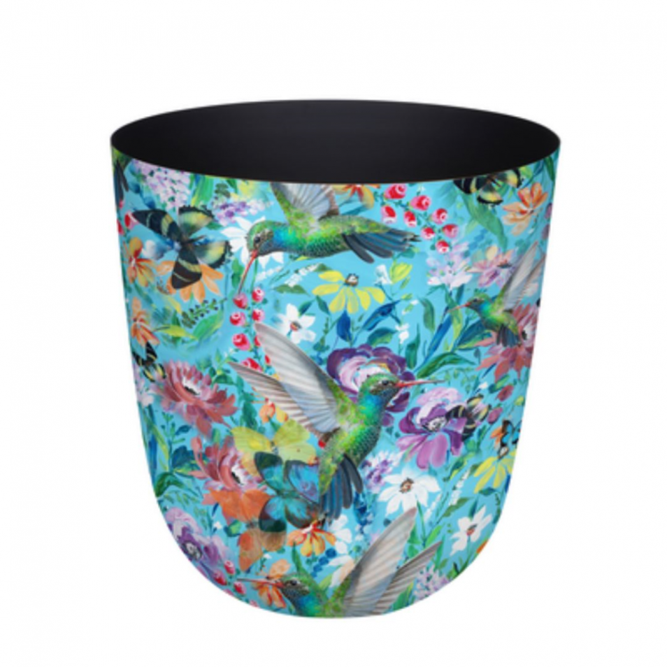 Pot en métal, motif colibris, D25 x H25