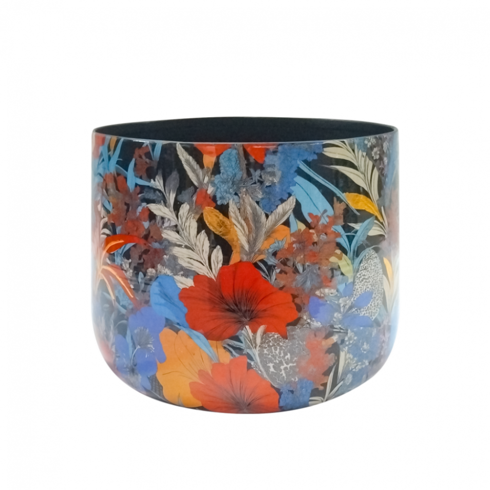 Pot en métal, motif bunga, D17 x H16