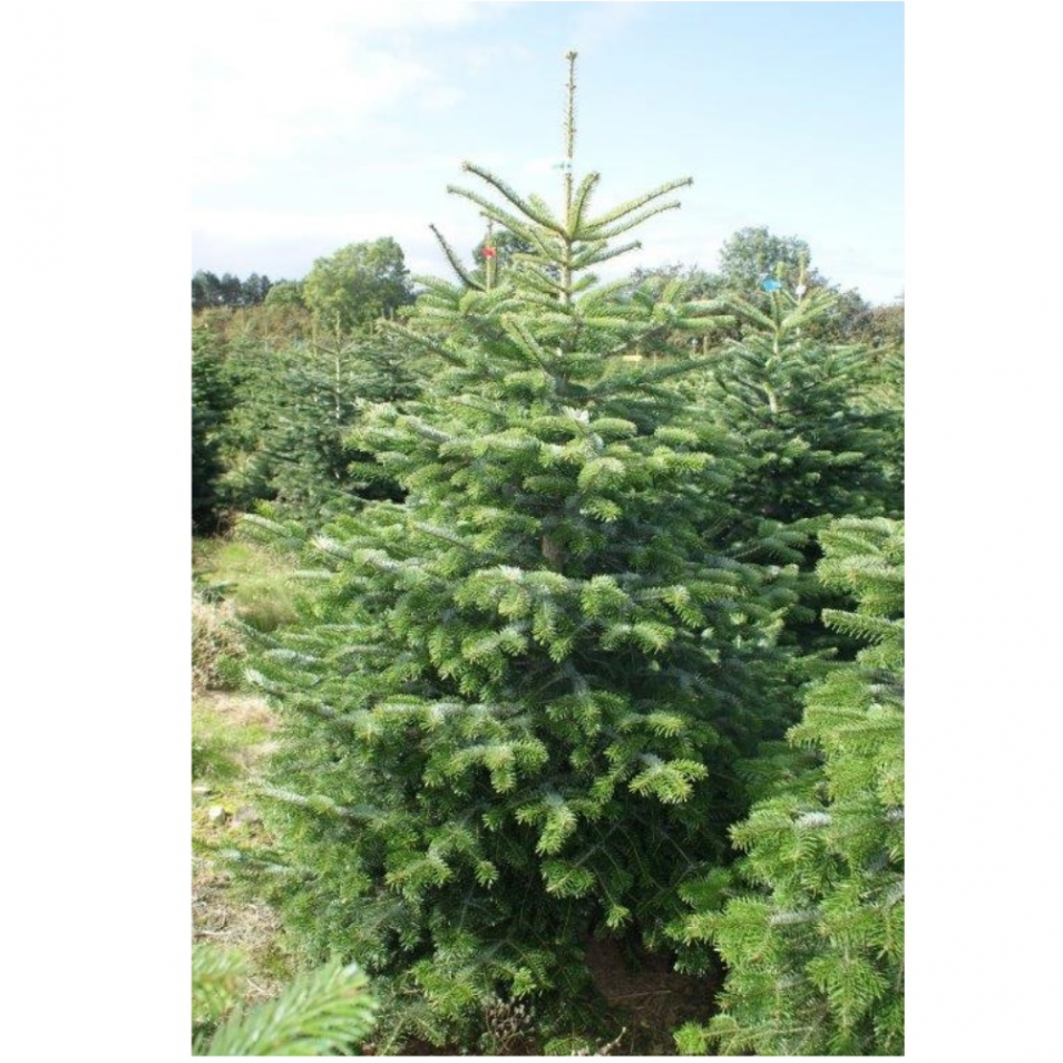 Sapin de Noël naturel, espèce Abies Nordmanniana (sapin de Nordmann). Pied coupé droit. Votre sapin vous sera livré emballé dans un filet afin d'éviter tout dommage durant le transport.
