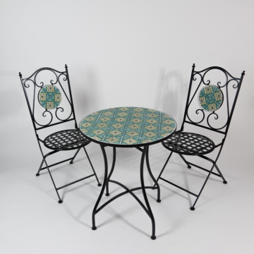 Set IBIZA- 1 table et 2 chaisesmatériaux : fer et mosaïqueen cas de saleté ou d’eau, utilisez un chiffon propre pour nettoyer.